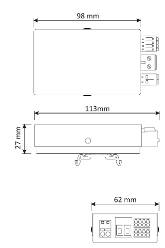 Wird geliefert mit Klemmen für DIN-Tragschiene, bei Einbau in Schaltschränken ist mit verminderter Funk-Erreichbarkeit zu rechnen.