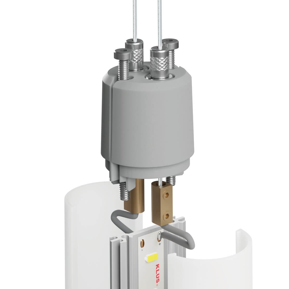 - Vertikale Aufhängung der Leuchte an Seilen, mit Sperren