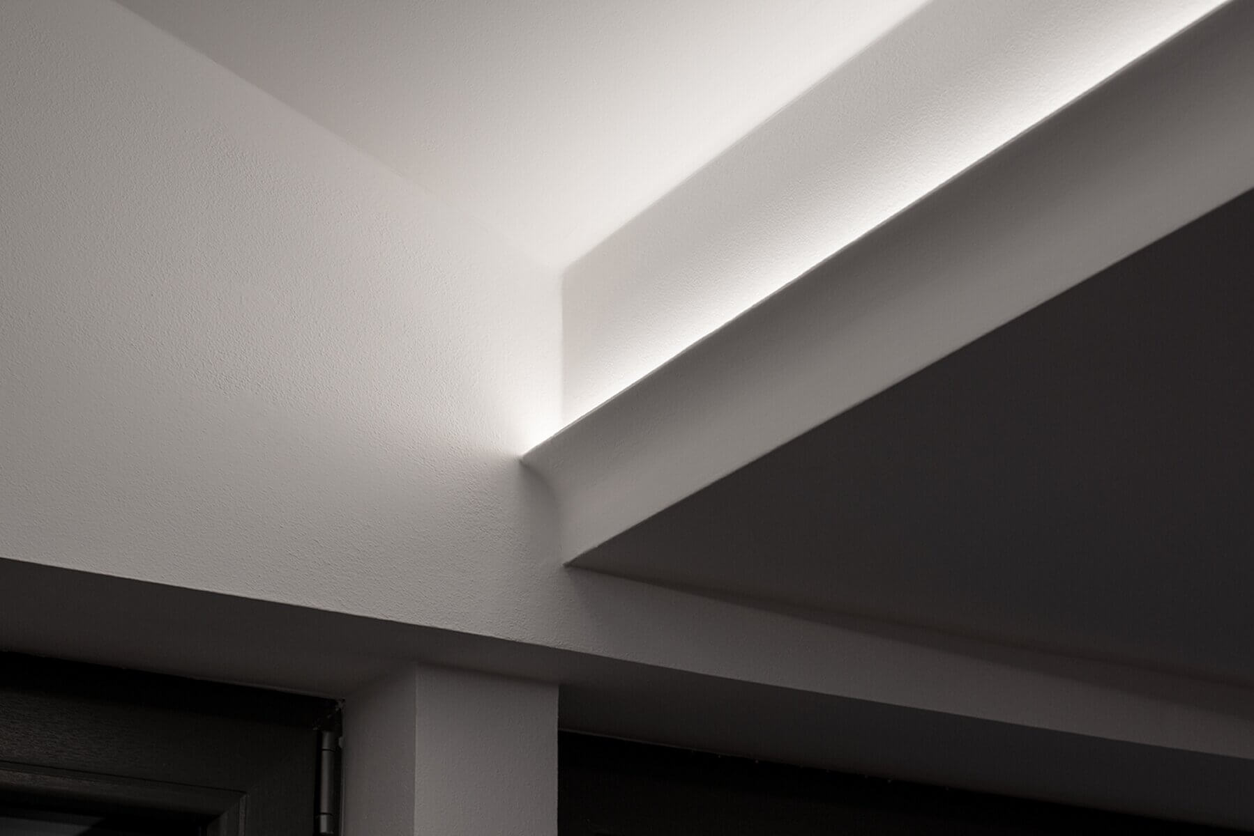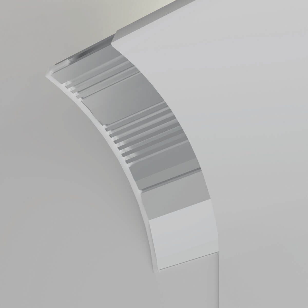 Das LED Alu-Profil LIT-L ist ein gebogenes Wandprofil zur dekorativen Beleuchtung von bspw. Nischen und wird auf ebenes Mauerwerk oder eine Rigips-Wand angebracht. Das Voutenprofil eignet sich für die Fertigung einer indirekten Deckenbeleuchtung mithilfe einer Wandleiste. Zusätzliche Vorteile sind eine einfache Montage, das geringe Gewicht und eine gute Wärmeabgabe. Die Voutenprofil-Leiste verfügt über das sog. "kleine Schloss", das Dank der ZM-Verbinder das Profil in unterschiedliche Richtungen verlängert werden kann. Das Alu-Profil ermöglicht die Installation von bis zu einem LED-Streifen mit einer maximalen Breite von 11 mm.