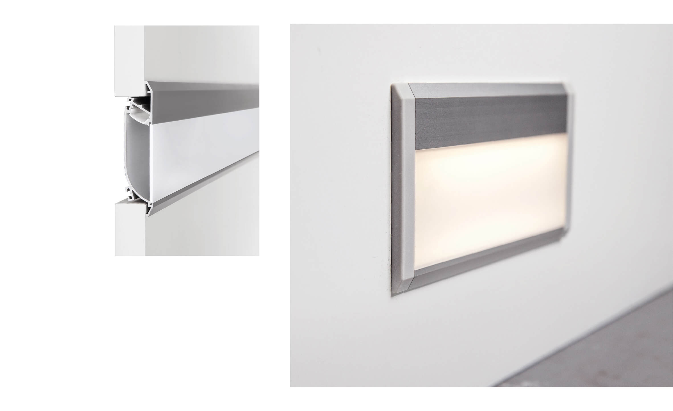 Eine ideale Alternative, eine Orientierungsbeleuchtung in einer Mauer zu erstellen, ist die LED Alu-Leiste OBIT. Das Treppenprofil sorgt für eine ästhetische Optik sowie sehenswerte Lichteigenschaften. Das Treppenprofil ist ein schlankes LED Wandeinbau-Profil zur Wegbeleuchtung und eignet sich zur Herstellung von Orientierungsleuchten in einer Gipskarton- oder Trennwand. Dieses LED Profil zeichnet sich durch seine einfache Installation sowie hohe Lichtleistung aus. Das Wandleisten-Profil kann mit zwei Abdeckungen bestückt werden, um eine homogene Lichtfläche zu erzeugen und kann sowohl im Innen- wie Außenbereich eingesetzt werden. Die Alu-Leiste verfügt über das sog. "kleine Schloss", das Dank der ZM-Verbinder das Profil in unterschiedliche Richtungen verlängern kann. Die Aluminiumleiste ermöglicht die Installation von einem LED-Streifen.