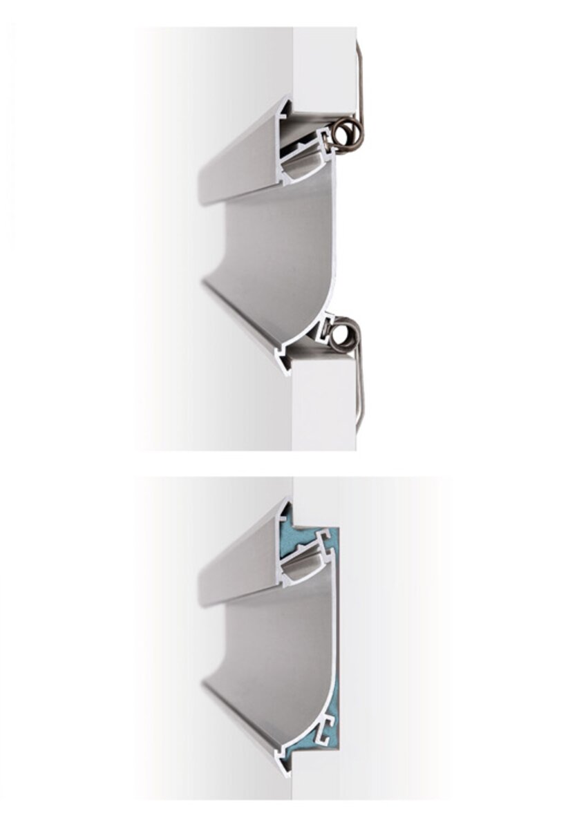 Einbaumontage: Bei der Verwendung von Gipskartonplatten mit der Stärke von 12,5 mm wird das LED Profil in die Fuge zwischen zwei Gipskartonplatten genau hineingepasst. Die KMA-Feder dient zur Befestigung von LED-Profilen an Oberflächen wie Holz, MDF-Platten oder Gipskartonplatten.
