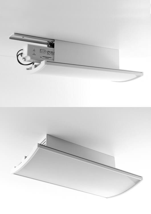 - KOPF-45-ST – für die vertikale Aufhängung, LED-Leiste wird direkt eingesetzt