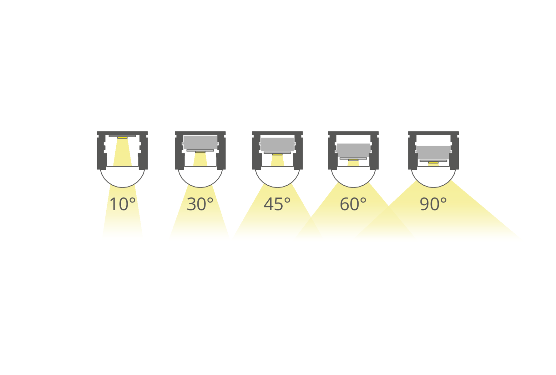 - Mit dem REGULOR-Profil können Abstrahlwinkel von 10°, 30°, 60° und 90° erzielt werden.