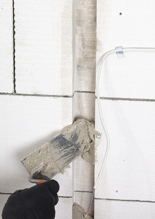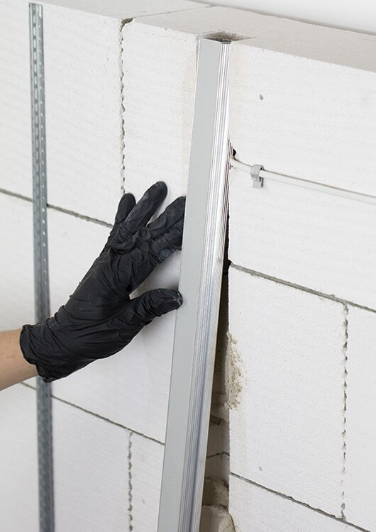 Einbaumontage: Um das Montageprofil in die Trockenbau-Gipsplatte oder in Mauerwerk- sowie Betongußelemente einzusetzen, muss vorab eine Nut hergestellt werden, in die das Profil mit Spachtelmasse oder Montagekleber eingebaut wird. Nach der Montage wird das LED Alu-Profil mit dem Feinspachtel überputzt und gestrichen. Anschließend wird das Trägerprofil mit den LED Alu-Profilen GIZA , GIZA-LL , LIPOD oder LOKOM bestückt und in das Trägerprofil mit den TEKNIK Clipsen eingeclipst. Wir empfehlen 4 Stück für 1m der Montageclips für die LED Leiste zu benutzen. Bei der Montage müssen an alle LED-Profile und Vorrichtungen zunächst Stromkabel angeschlossen werden. Bitte verwenden Sie zum Verputzen die Schutzabdeckung TECH-28. Die Montage der LED Leiste in Kombination mit Trägerprofil TEKNIK-ZM-TK zeichnet sich durch die einfache Montage und Demontage des Alu-Profils aus, was die Beleuchtungswartung erleichtert.
