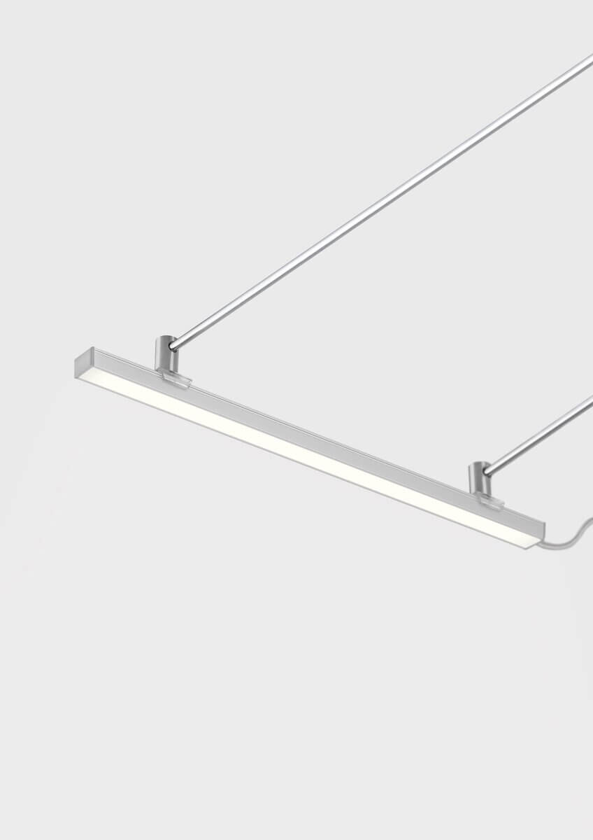 Die Befestigung K-10-PP dient ausschließlich der Herstellung einer Hänge-Beleuchtung. Wir empfehlen 2 Stück pro laufenden Meter der LED-Schiene. Die Montage erfolgt durch Einpressen des Kunststoffteils der Befestigung in die entsprechende Nut, mit der das passende LED-Profil ausgestattet ist. Eine Stange wird in die Öffnung in der Befestigung geführt und mit einer Inbusschraube festgezogen.