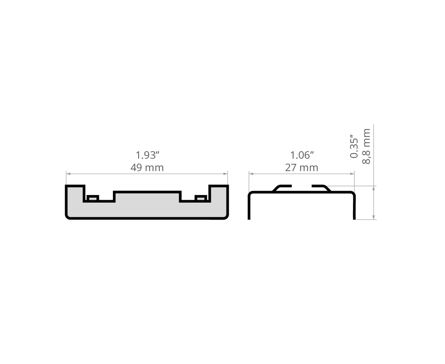 Länge x Breite x Höhe - 49 mm x 27 mm x 8,8 mm