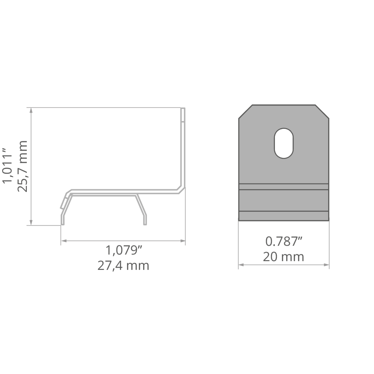Der Befestigungsclip GIP-STN-90G dient zur Aufputzmontage des Profils im 90-Grad-Winkel. Montiert wird der Clip mithilfe einer Senkkopf-Schrauben von maximal 4 mm Durchmesser an der Oberfläche (Schrauben sind nicht im Lieferumfang enthalten).Das LED-Profil rastet am Befestigungsclip mühelos ein. Wir empfehlen 2 Klemmen pro Meter eines LED-Profils.