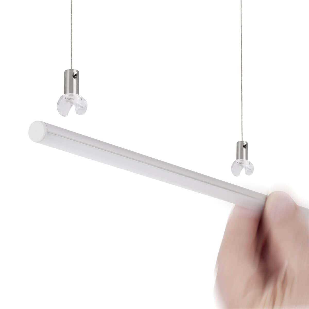 Der Befestigungskopf PLD-10-WL dient der Herstellung von Hängeleuchten zur Abhängung in Längsrichtung mit einem Stahlseil mit einem Durchmesser von 0.5 mm bis 1 mm. Die Befestigung bietet die Möglichkeit der stufenlosen Regulierung und Einstellung des Beleuchtungswinkels durch Drehen des Kopfes/Halters. Mit nur einem KLICK kann die Alu-Leiste auf der gewählten Oberfläche angebacht werden.