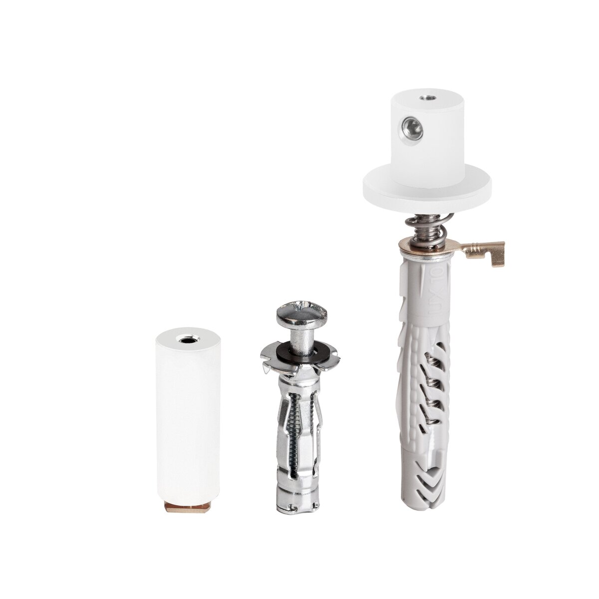Dieses Set dient der Abhängung in Längsrichtung über ein Stahlseil oder Stab. Es ermöglicht eine einfache Einstellung der gewünschten Höhe der Leuchte mit einem Schiebemechanismus und einem Stahlseilschloss. Das Set kann an Holz, Mauerwerk, Gipskarton mit einer hohen Tragfähigkeit bis zu 15 kg befestigt werden.