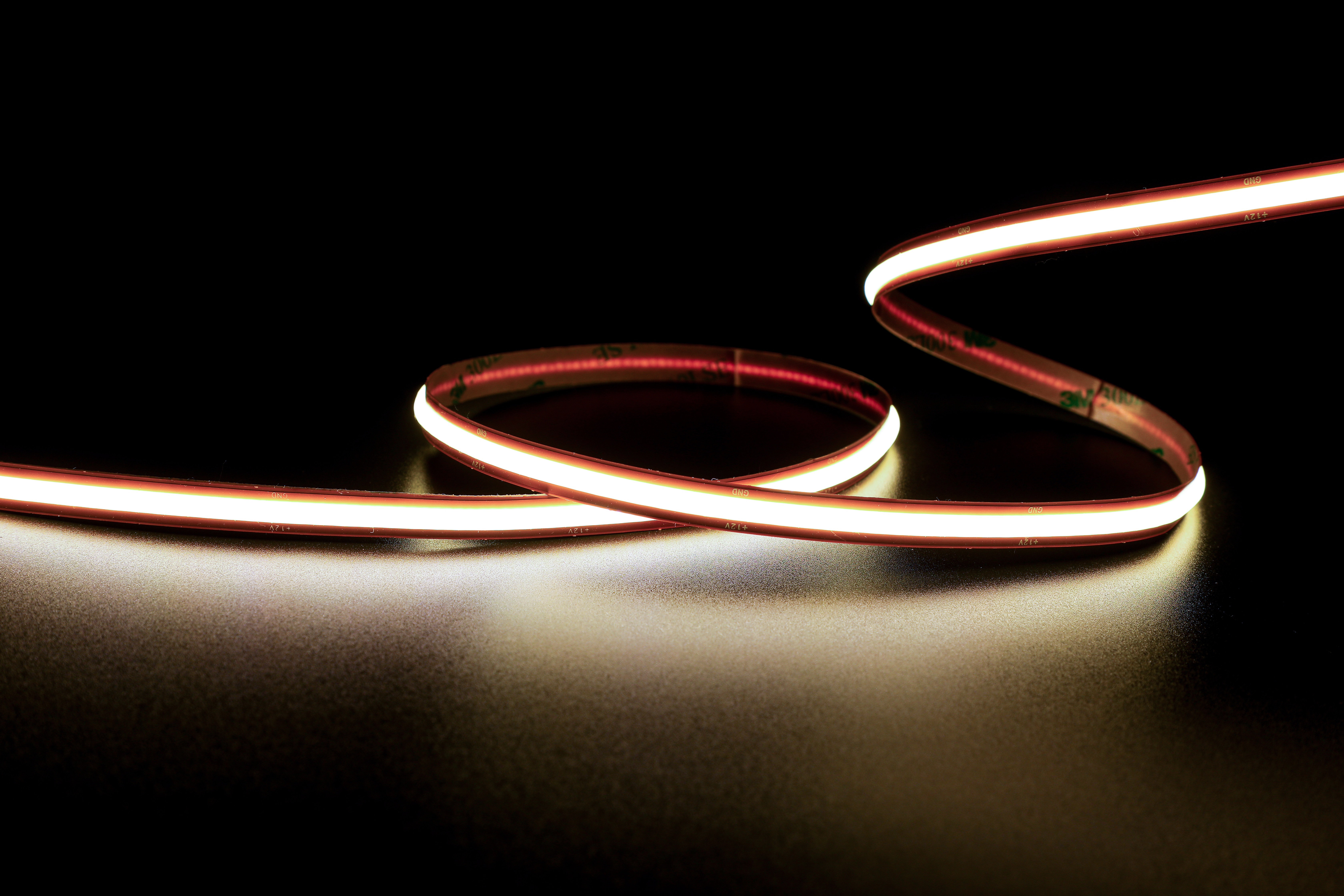 Dieser vielseitige COB free cut LED Streifen mit einer Farbtemperatur von 4000 K und 528 LEDs pro Meter begeistert mit dem zusätzlichen Komfort, dass er überall gekürzt werden kann und so perfekt auf verschiedene Projekte und Installationen abgestimmt werden kann. COB free cut LED Streifen eignet sich sehr gut für den Verbau in flachen LED Alu Profilen, da auch trotz minimalem Abstand von LED Streifen zur Abdeckung ein homogenes Lichtbild erzeugt werden kann und der weite 180° Abstrahlwinkel ermöglicht eine umfassende Beleuchtung.