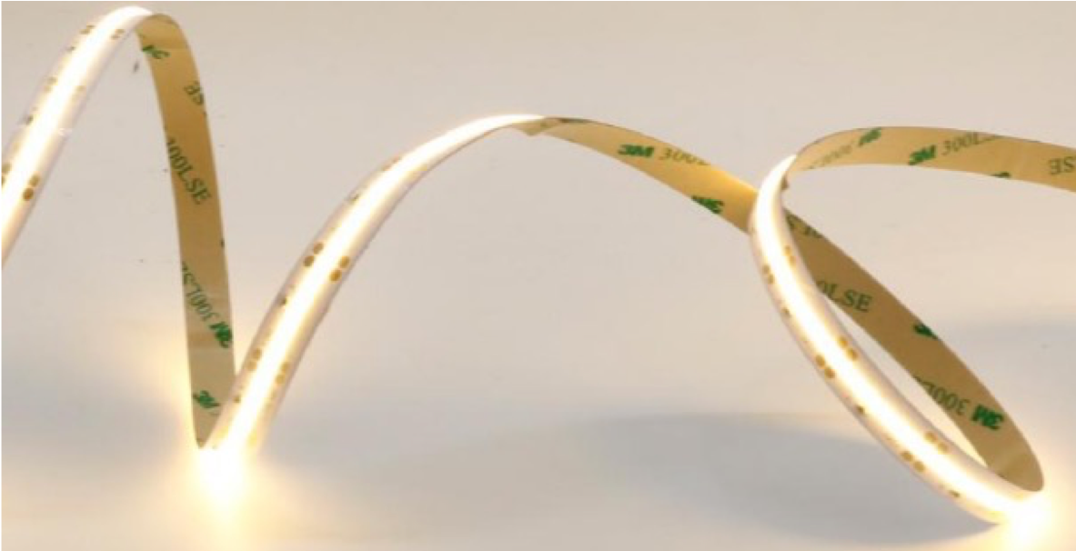 COB LED STREIFEN (Chip-on-Board) neuester Technikmit eine gleichmäßiger Illumination über die komplette Abdeckungsbreite. Der COB LED Streifen eignet sich sehr gut für den Verbau in flachen LED Alu Profilen, da auch trotz minimalem Abstand von LED Streifen zur Abdeckung ein homogenes Lichtbild