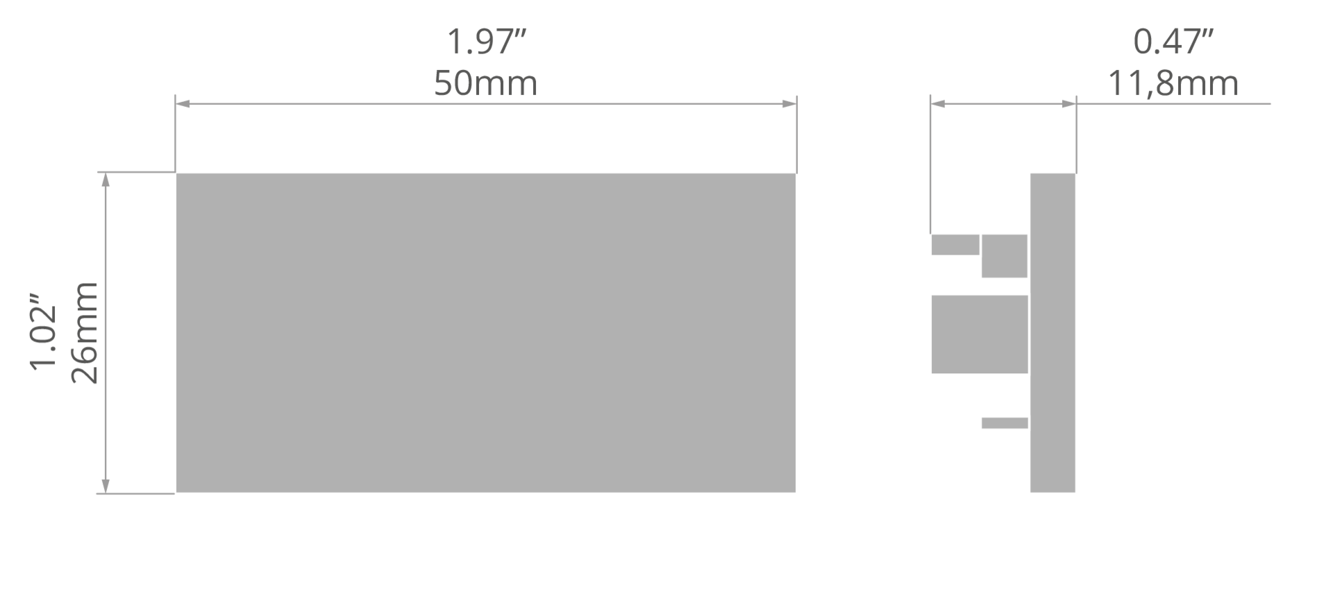 Länge/Höhe/Breite: 11,8mm/26mm/50mm