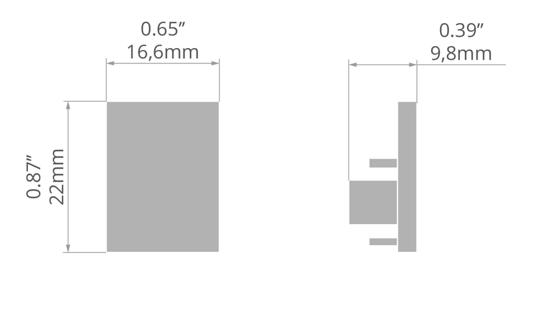Länge/Höhe/Breite: 9.8 mm/22 mm/16.6 mm