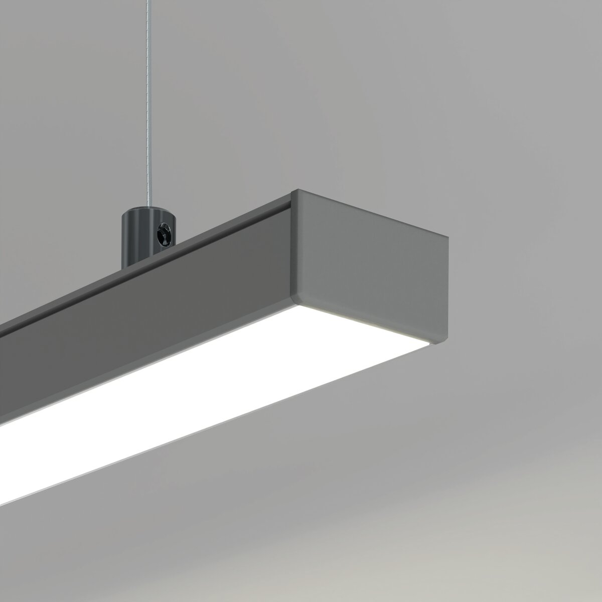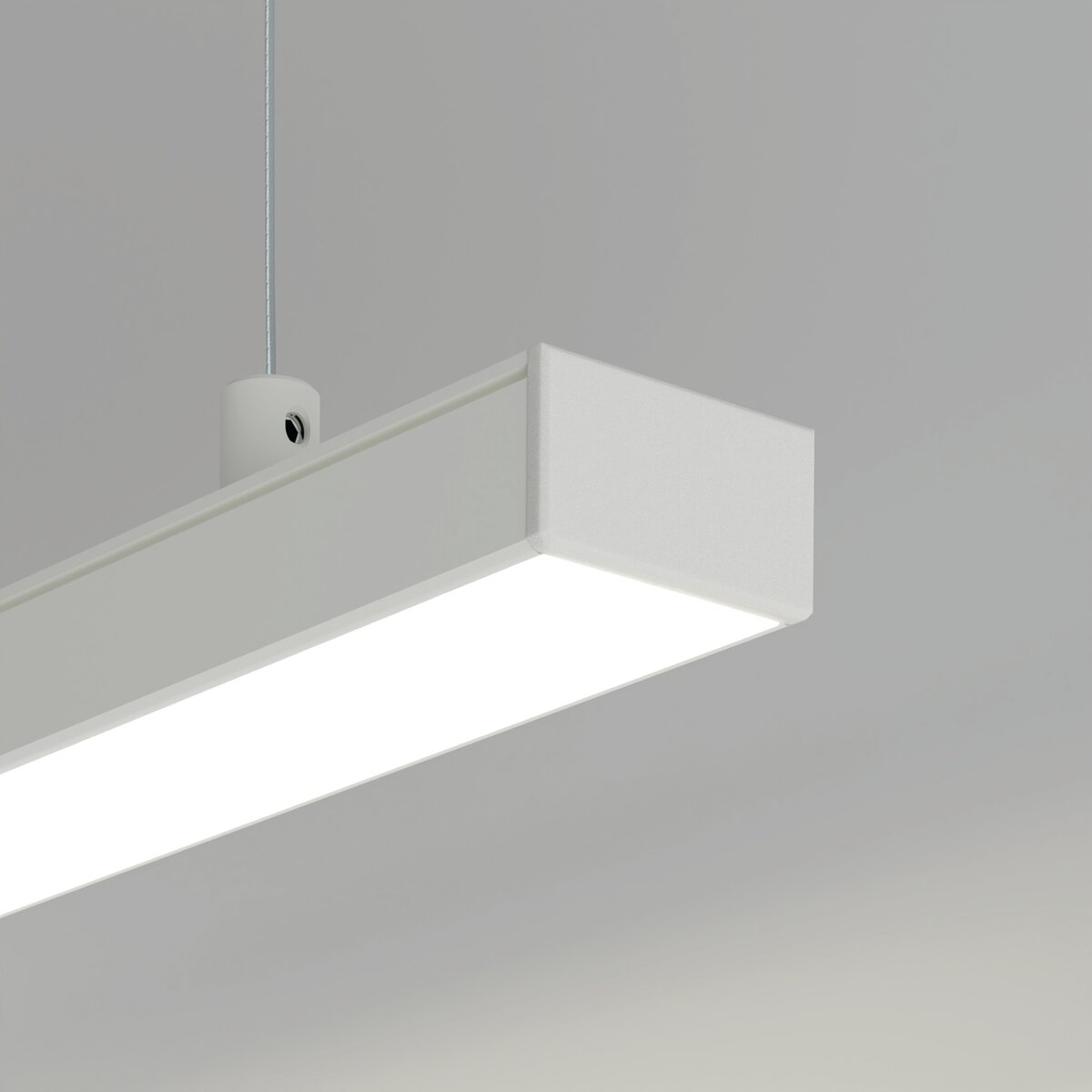 Aufhängung: Das Profil kann direkt von der Decke mit passenden Elementen wie dem Befestigungsset RG-1 oder RD-1 abgehängt werden. So entstehen elegante, lineare Pendelleuchten für Wohn-, Büro- und Objektbereiche.