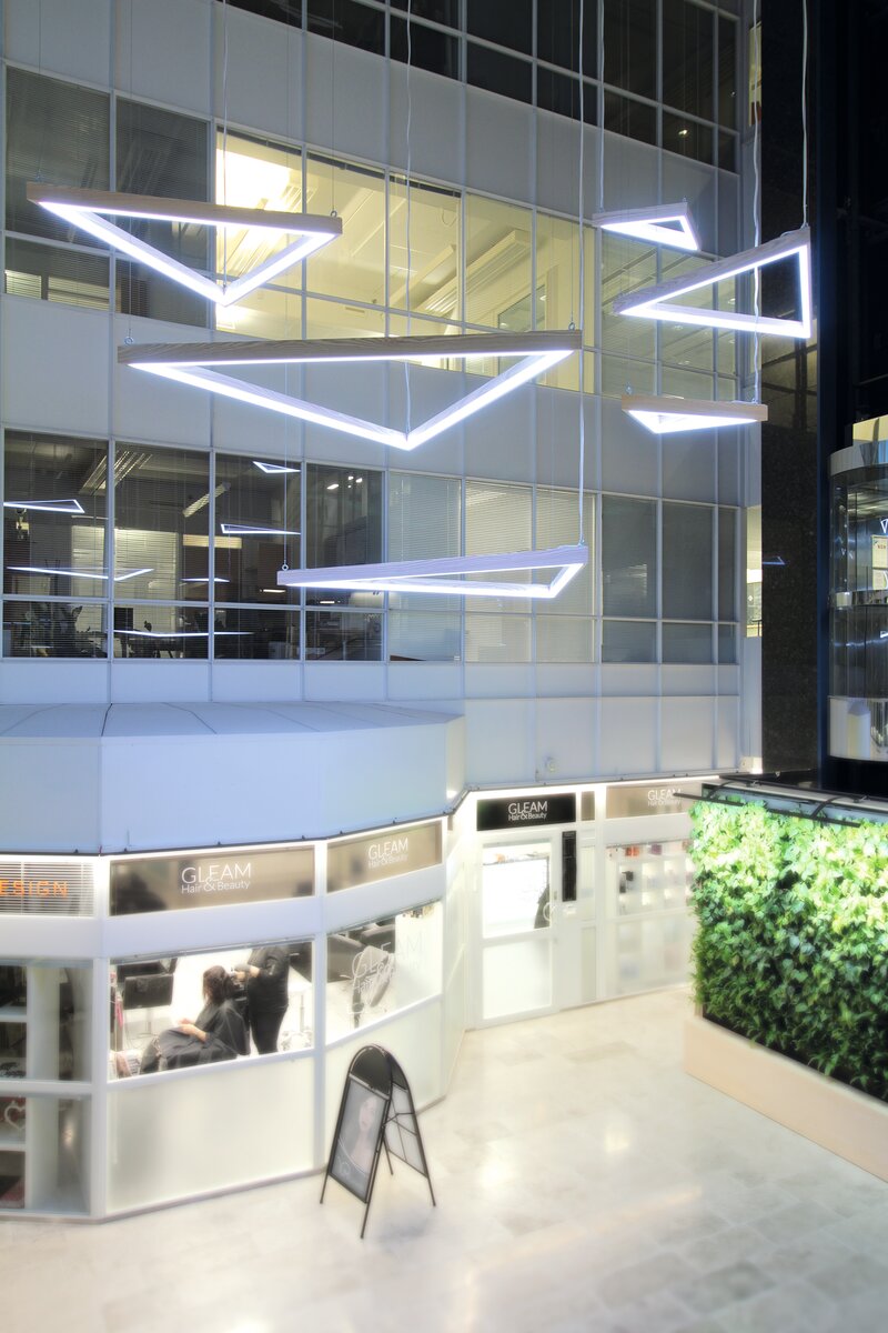 Aufputzmontage: Das Winkel Alu-Profil kann überlicherweise in horizontaler oder vertikaler Richtung mit einem Beleuchtungswinkel von 45° an die Gipskartondecken mit Hilfe von GP Einbaufedern montiert oder mit passsenden Schrauben als auch Montagekleber befestigt werden. Nach der Befestigung wird rückseitig ein kleiner Kanal zur Verlegung der Versorgungsleitungen erstellt.