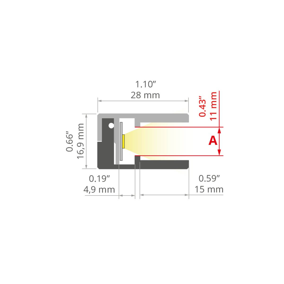 Das LED-Alu Profil KRAV-05IN wird für die dekorative Kantenbeleuchtung von Glas- oder durchsichtigen Acrylglasscheiben mit einer Plattenstärke von 11,9 - 13,5 mm verwendet. Das Glaskantenprofil wird gerne verwendet zur Hintergrundbeleuchtung von Glasrregalböden, Vitrinen, Leuchtreklamen, Firmen- und Werbeschildern. Das Glaskanten-Profil erfüllt somit keine Baufunktion. Die Aluminiumleiste zeichnet sich durch ihre geringe Höhe aus und ihrer kompakten Breite und ermöglicht die Installation von einem LED-Streifen.