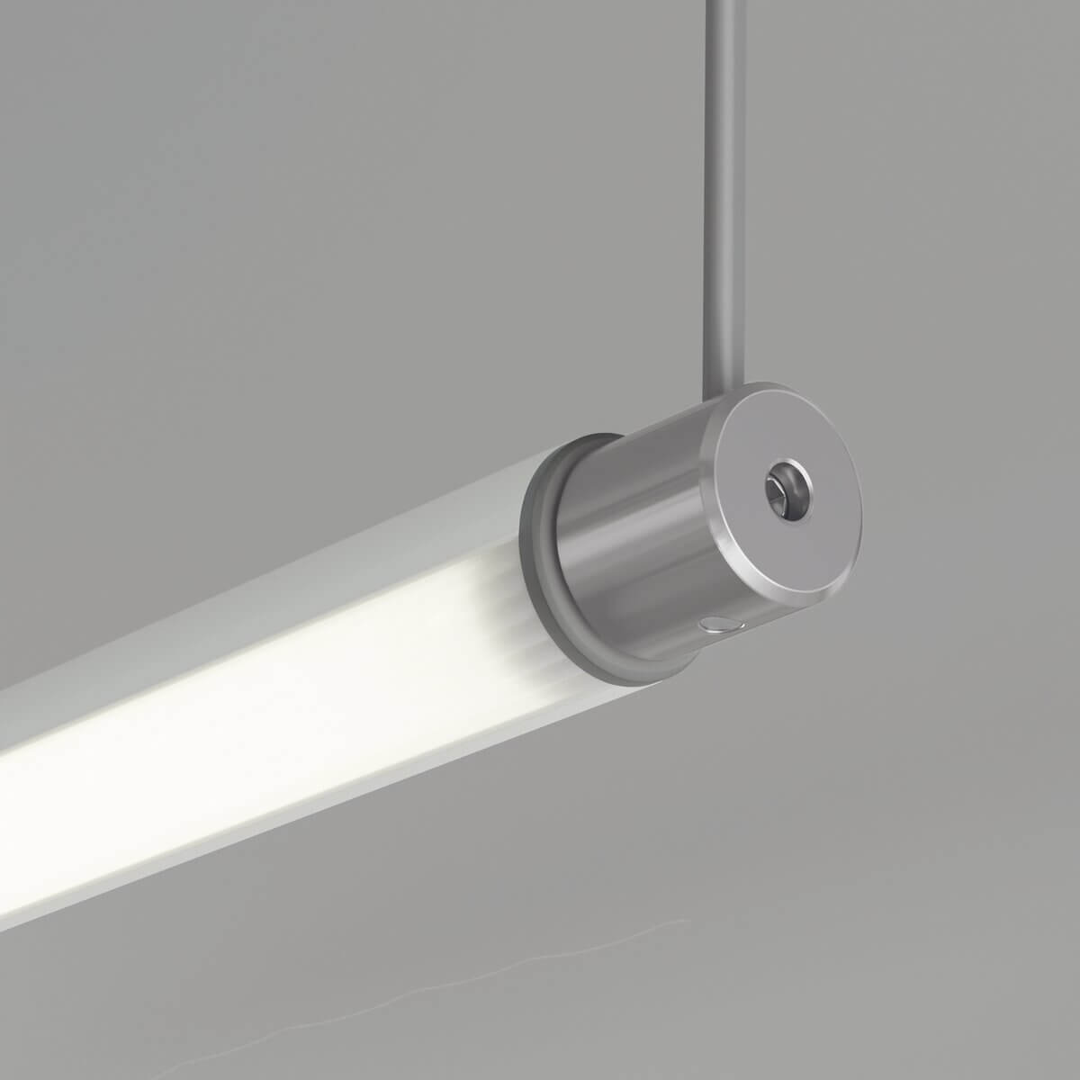 Für die Stromversorgung innerhalb der LED-Leuchte sowie Abhängung in Längsrichtung empfehlen wir die Befestigung FI-8-LIN-ZMZ mit einem Stahlseil. Alternativ können Sie mit der Befestigung PUSZ-PRET-ZM die LED-Leuchte mit einer Metallstange abhängen.