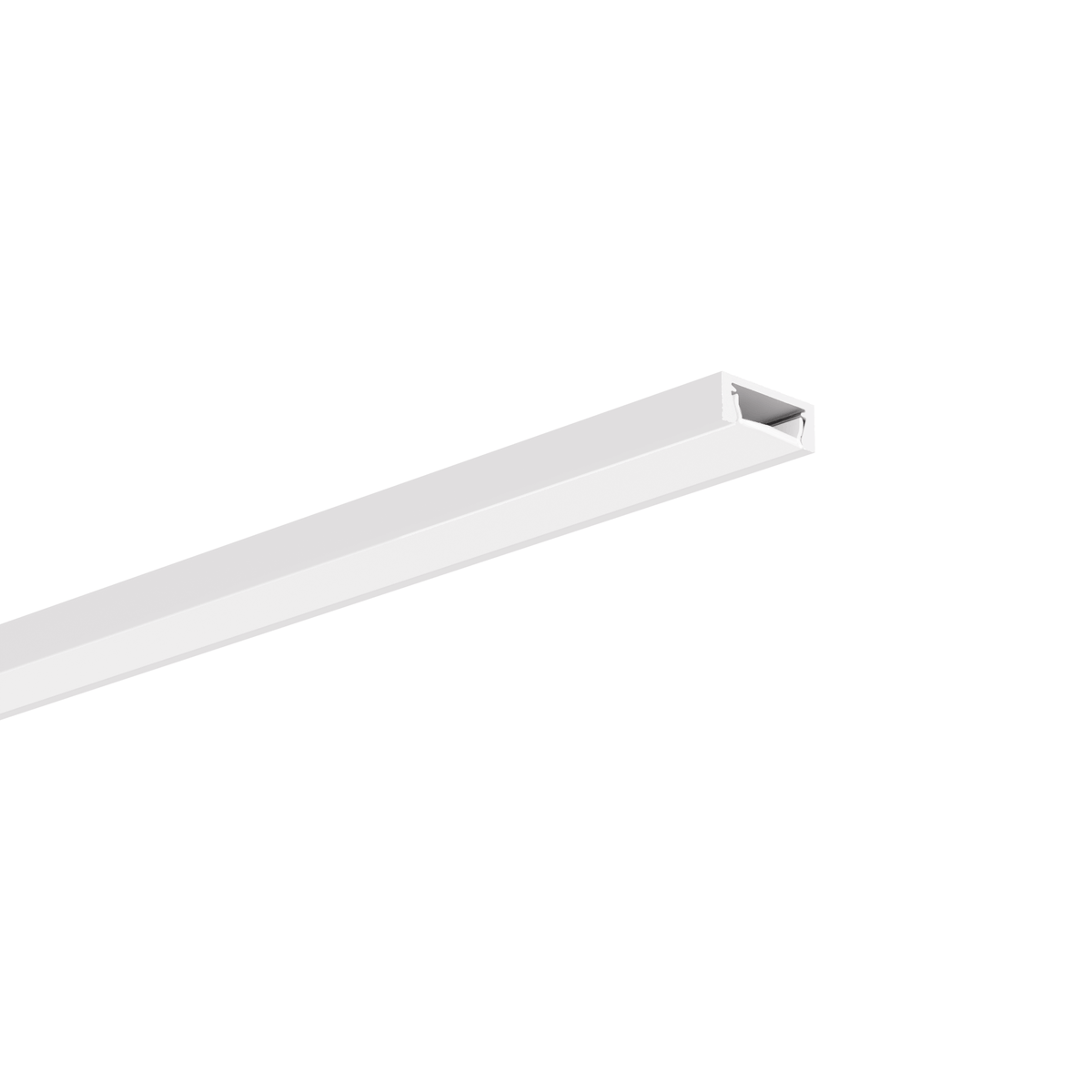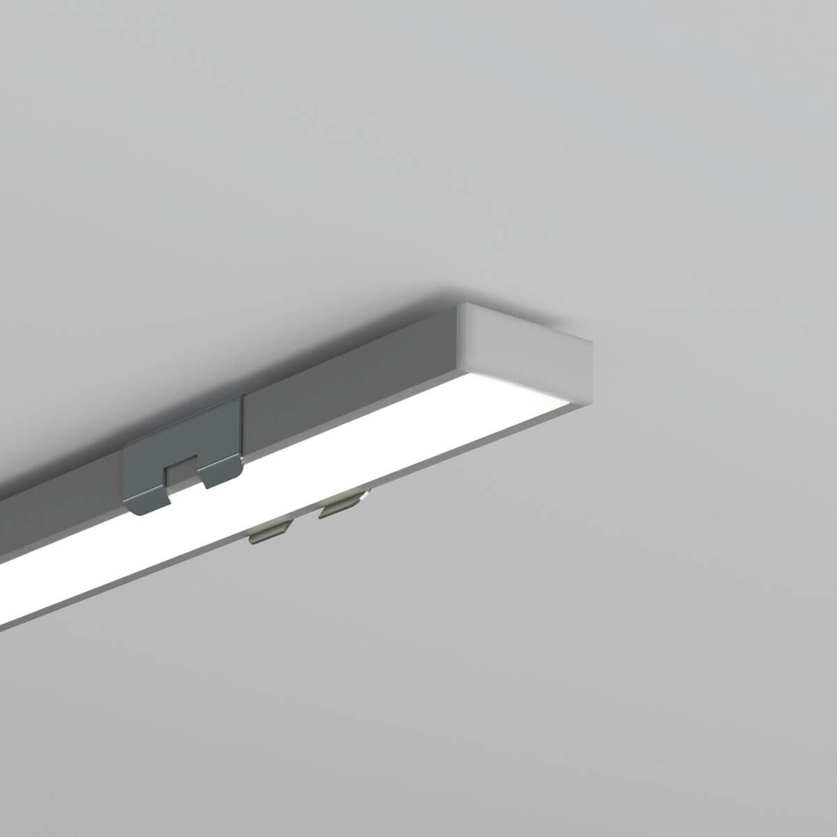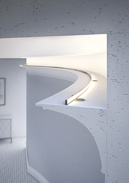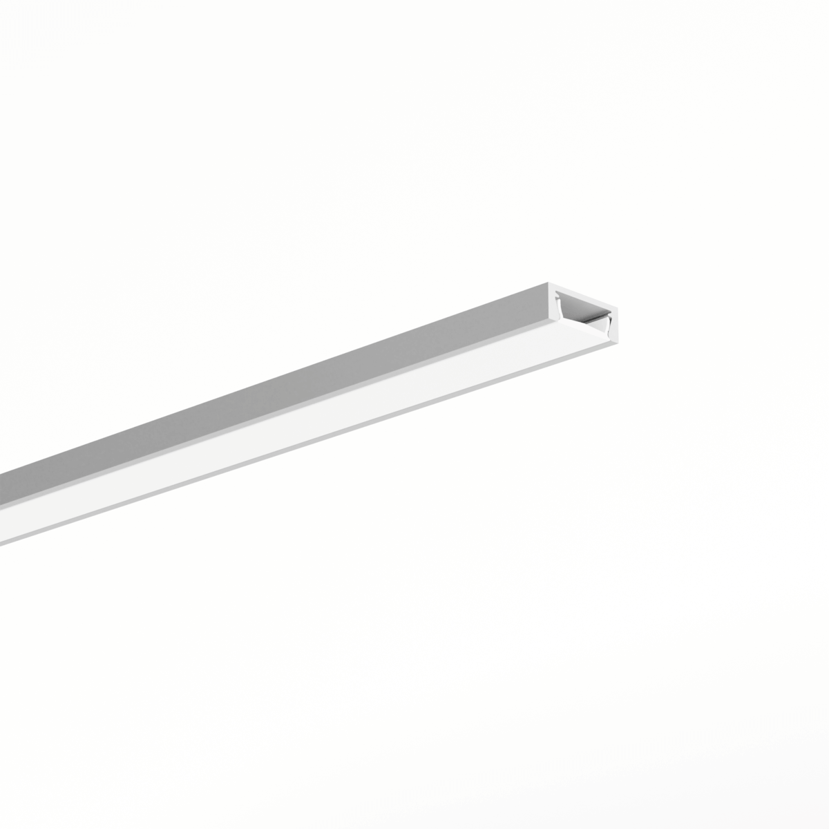 Die effiziente Wärmeableitung des Aluminiums unterstützt die Lebensdauer des LED-Streifens (ein LED-Strip pro Profil). In Kombination mit der Abdeckung LIGER-11 entsteht eine durchgehende Lichtlinie – ohne sichtbare LED-Punkte.