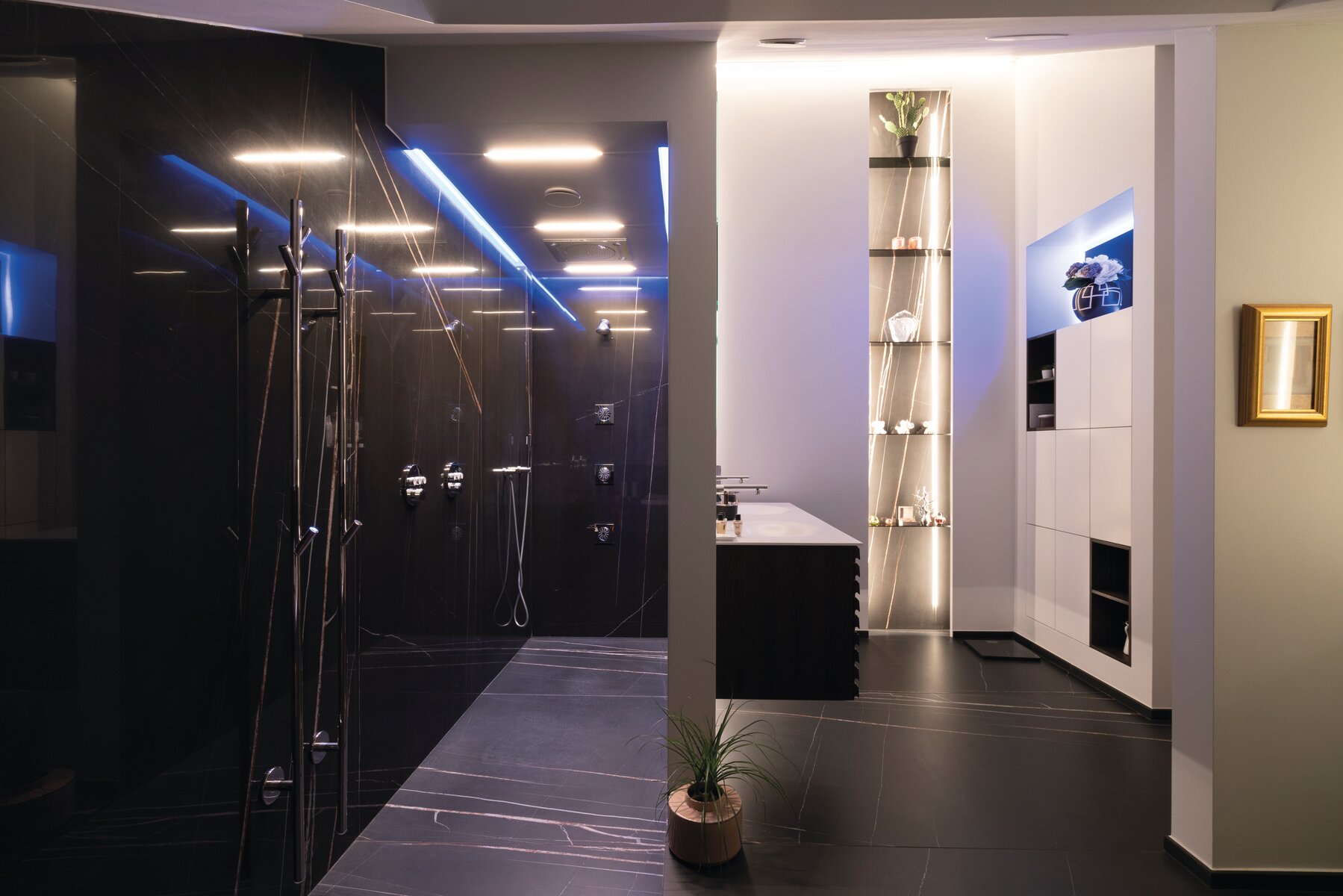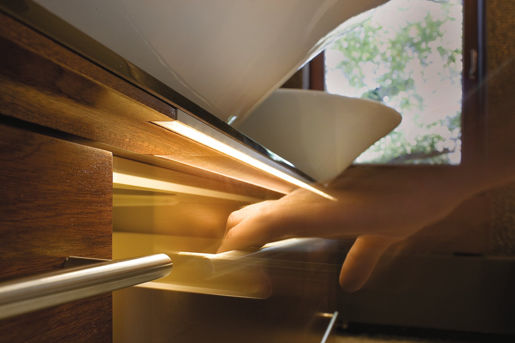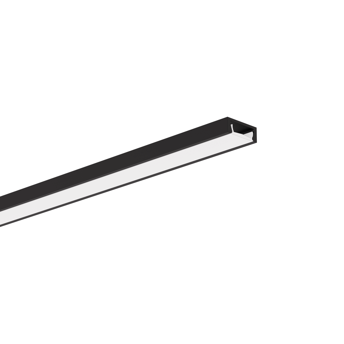 Die effiziente Wärmeableitung des Aluminiums unterstützt die Lebensdauer des LED-Streifens (ein LED-Strip pro Profil). In Kombination mit der Abdeckung LIGER-11 entsteht eine durchgehende Lichtlinie – ohne sichtbare LED-Punkte.