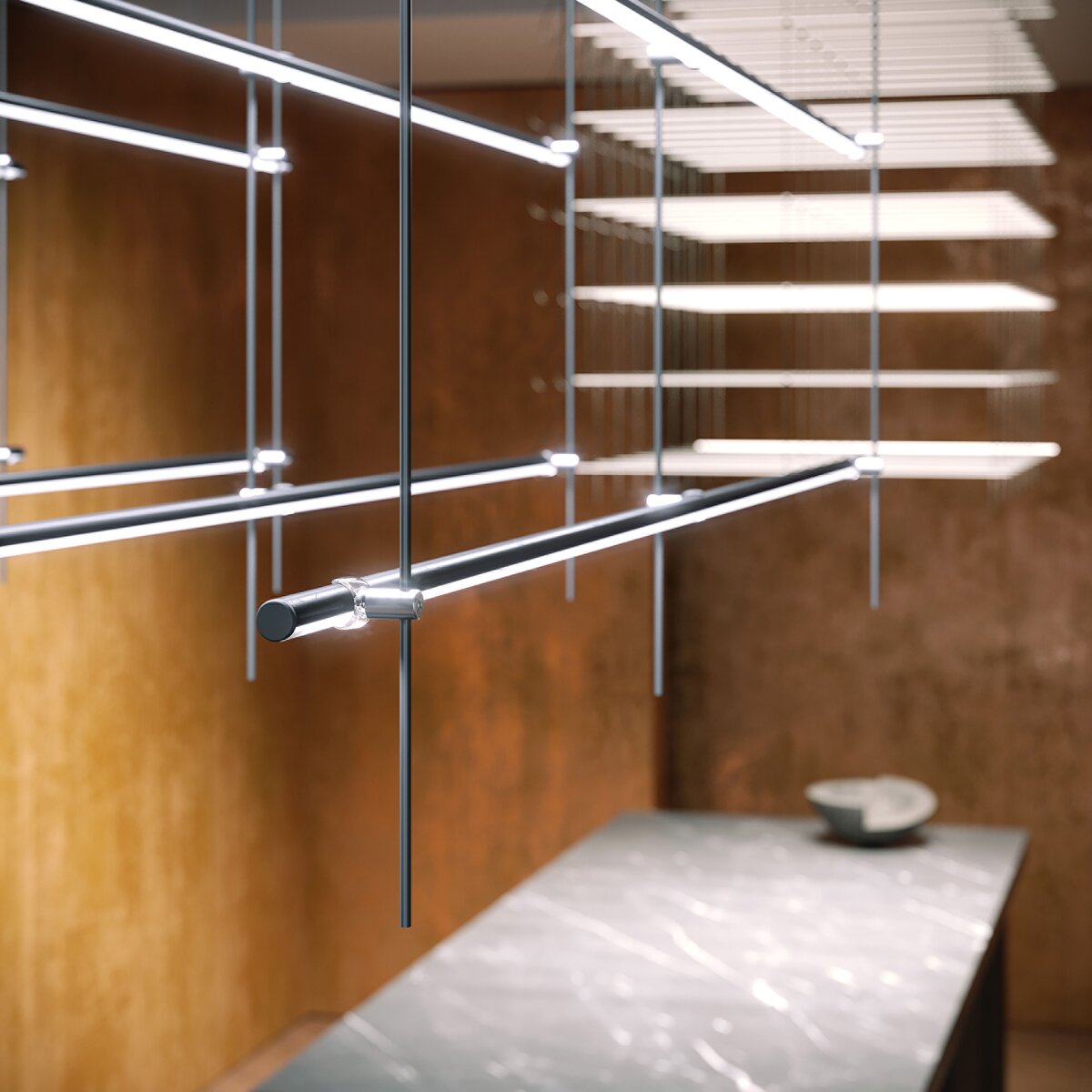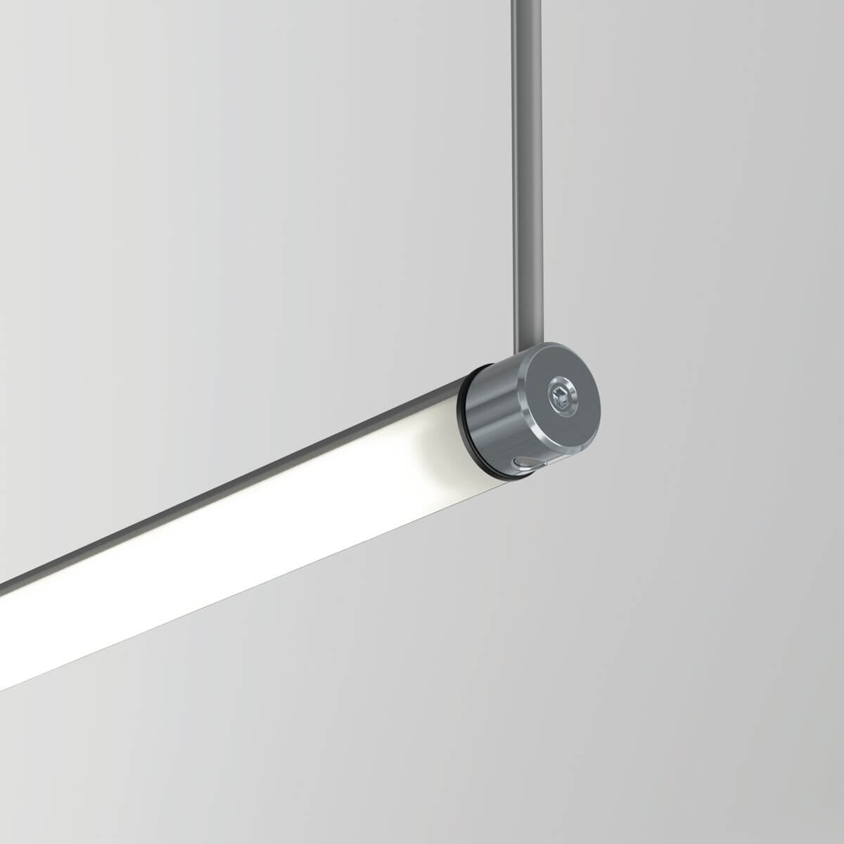 Aufhängung: Dieses Rundprofil kann auf verschiedene Arten aufgehängt werden. Es kann mit der Halterung PLD-10-PP quer montiert werden und bietet die Möglichkeit, die Lichtrichtung anzupassen. Die zweite Möglichkeit besteht darin, sie als Hängelampe mit den PLD-10-WL kompatiblen „Mit Seil“-Halterungen und mit der PLD-10-WP kompatiblen „Mit Stab“-Halterung zu installieren. An beiden Griffen besteht die Möglichkeit der stufenlosen Regulierung und Einstellung des Beleuchtungswinkels durch Drehen des Kopfes.