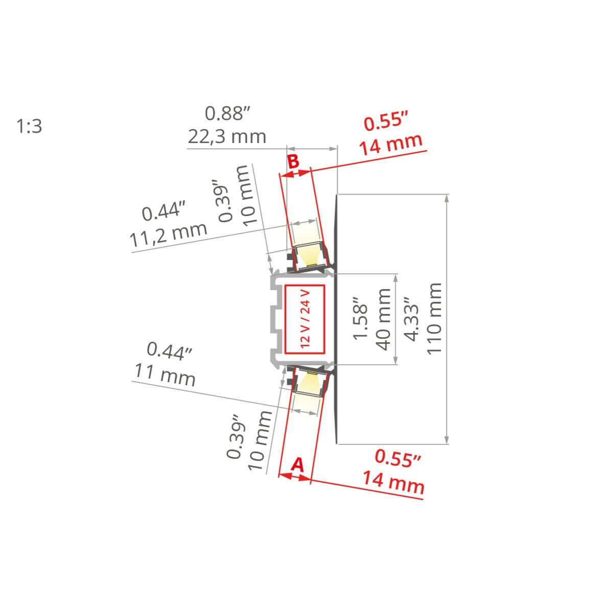* verwendbar mit LED Bänder bis zu: A - 14 mm B- 14 mm