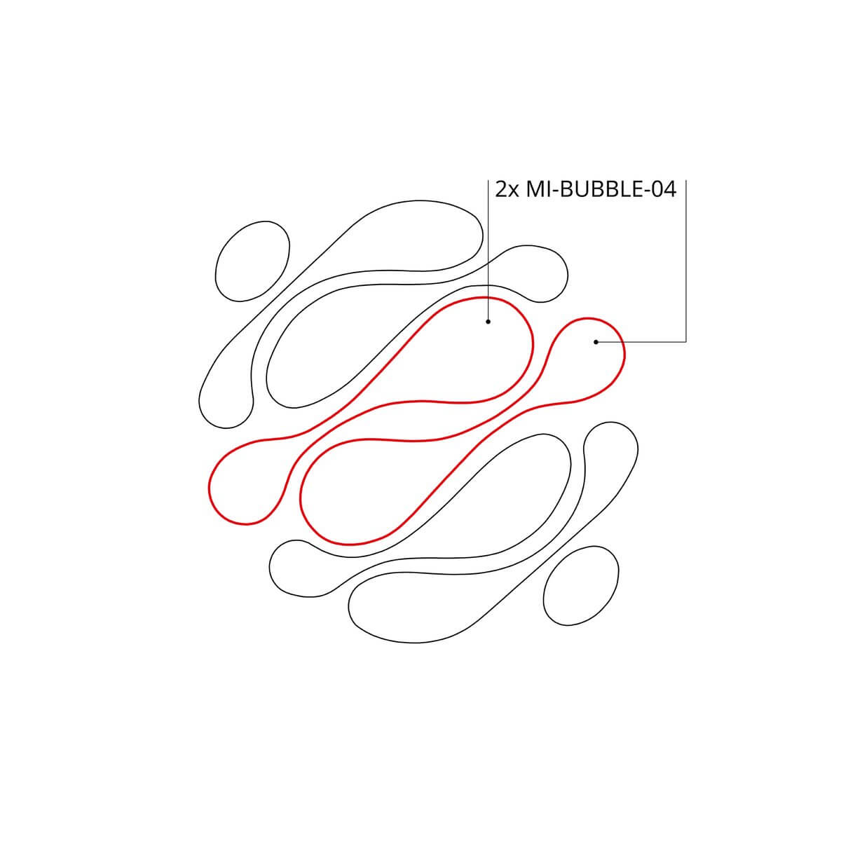 Das Formgestaltende Modul MI-BUBBLES-04 gehört zum modularen MIFOR-70-System und lässt sich als eigenständige Leuchte nutzen. Es enthält eine Lichtquelle und Seilaufhängungssystem und ist kompatibel mit Lichtsteuerungen wie Casambi (Bluetooth), DALI und 0–10 V.