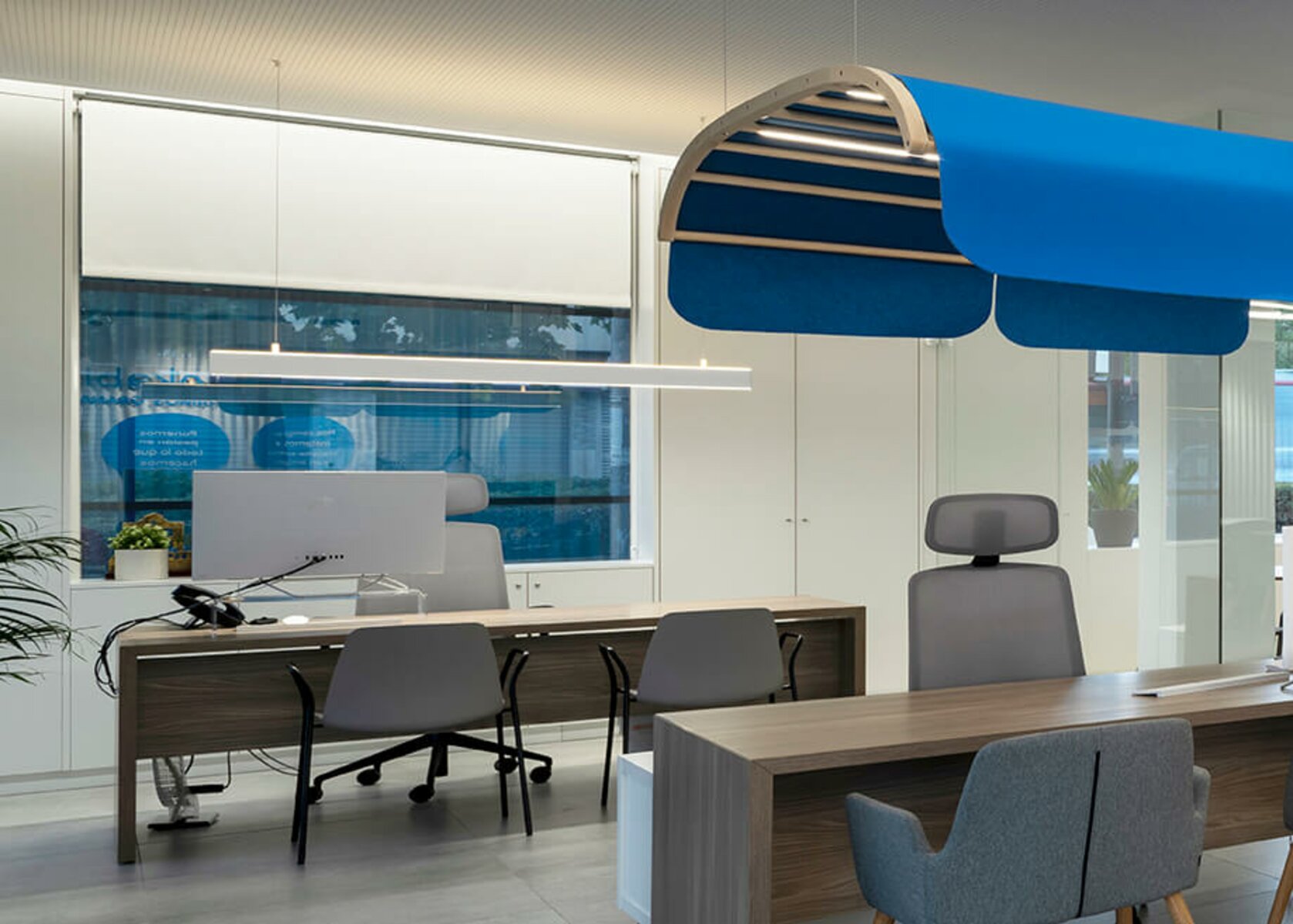 Die LED-Pendelleuchte DES dient sowohl der Haupt- als auch der dekorativen Beleuchtung und bietet zwei Beleuchtungsrichtungen. Mit einem Blendfaktor (UGR) von unter 19 sorgt sie für eine angenehme Lichtatmosphäre, die die Produktivität fördert. Das Design ermöglicht Platz für das Netzteil und elektronische Komponenten, die einfach gewartet werden können. Das Netzteil kann zudem mit speziellem Zubehör im Profil verriegelt werden. Anwendungsbeispiele im Büro sind die gleichmäßige Ausleuchtung von Arbeitsplätzen, die Schaffung von ansprechenden Empfangsbereichen sowie die Akzentuierung von Besprechungsräumen oder Lounge-Bereichen.