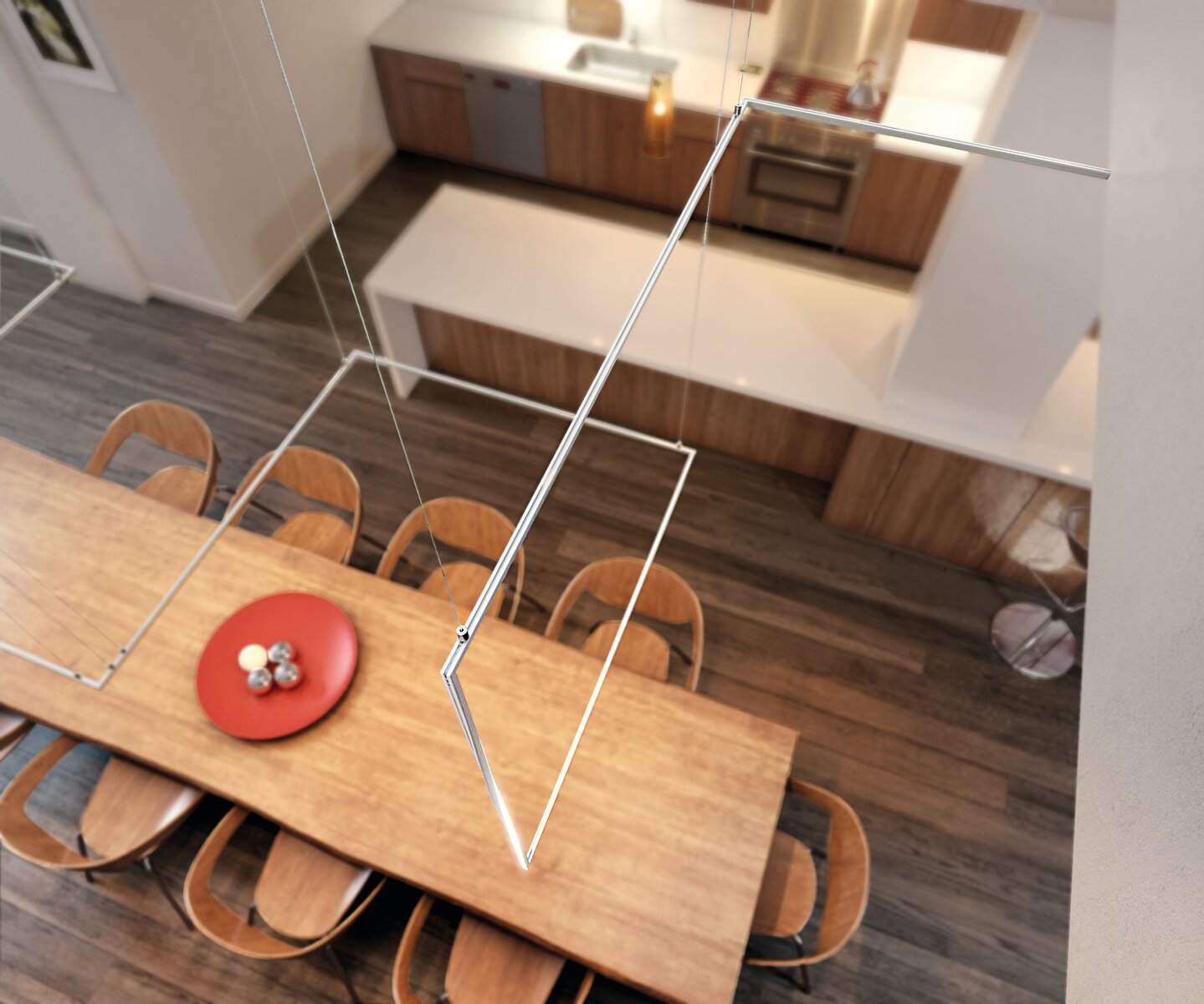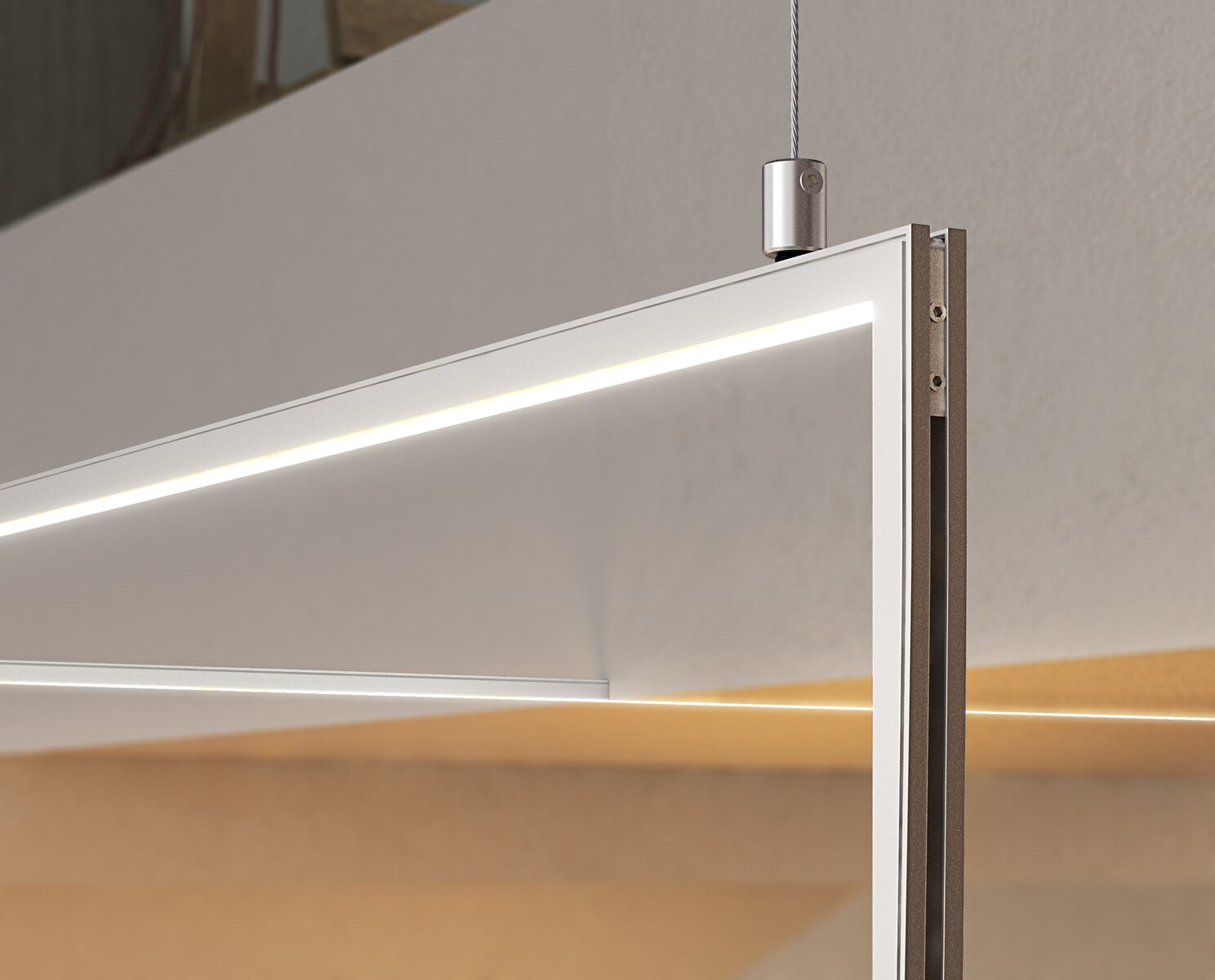 Die Installation der Pendelleuchte erfolgt mithilfe der Befestigung FI-8-LIN-ZM. Die Pendelleuchte kann an der Oberfläche abgehangen werden. Für das Abhängen wird ein Seil mit einem Durchmesser von 0,5 mm empfohlen.
