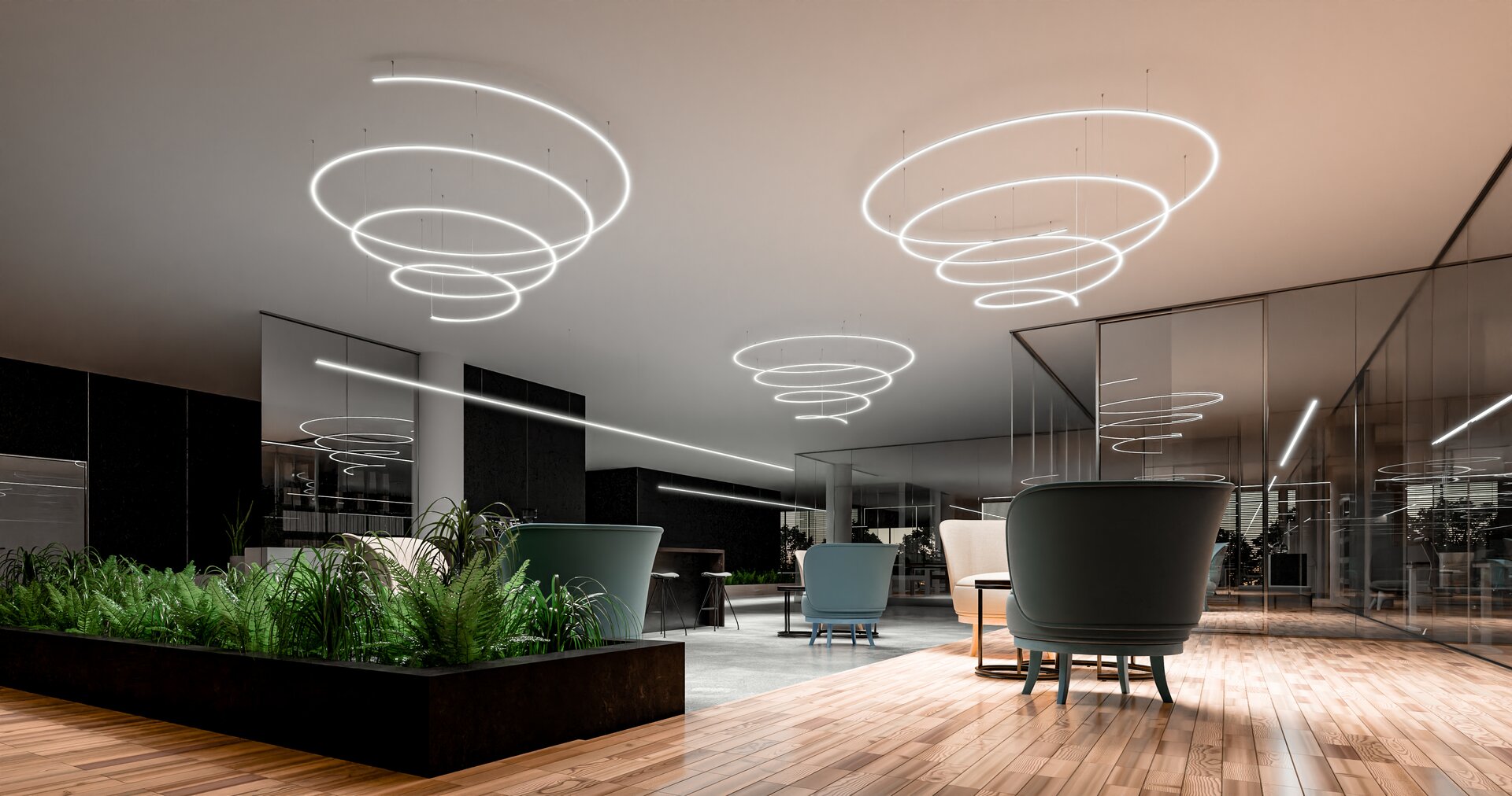 Mögliche Formen der Leuchte: Linear, polygonal, rund