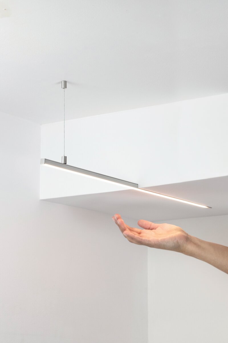 Beim Kauf der LED-Pendelleuchte haben Sie die Wahl zwischen verschiedenen Längen von 1, 2 oder 3 Metern. Falls Sie eine individuelle Länge benötigen, ist das kein Problem – wir passen die Beleuchtung gerne auf Ihre Wunschgröße an. Zudem können Sie zwischen unterschiedlichen Farbtemperaturen wählen: 2700K (warmweiß), 3000K (warmweiß), 4000K (neutralweiß) oder 6000K (kaltweiß), sodass Sie die perfekte Lichtatmosphäre für Ihre Räume schaffen können. Zusätzlich haben Sie die Möglichkeit, die Steuerung nach Ihren Bedürfnissen anzupassen. Wählen Sie zwischen der DALI-Steuerung, die eine flexible und moderne Dimmbarkeit ermöglicht, oder einer klassischen On/Off-Schaltung, die eine einfache Ein- und Ausschaltung der Beleuchtung bietet