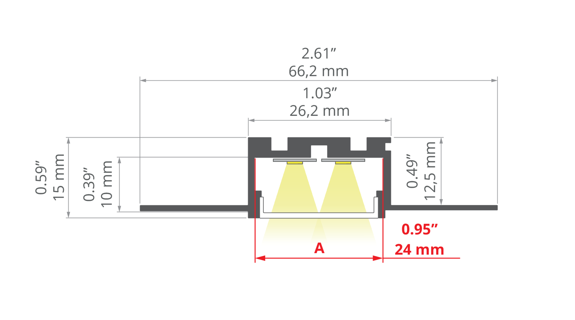 - Verwendbar mit LED-Bändern bis zu 24 mm Breite.