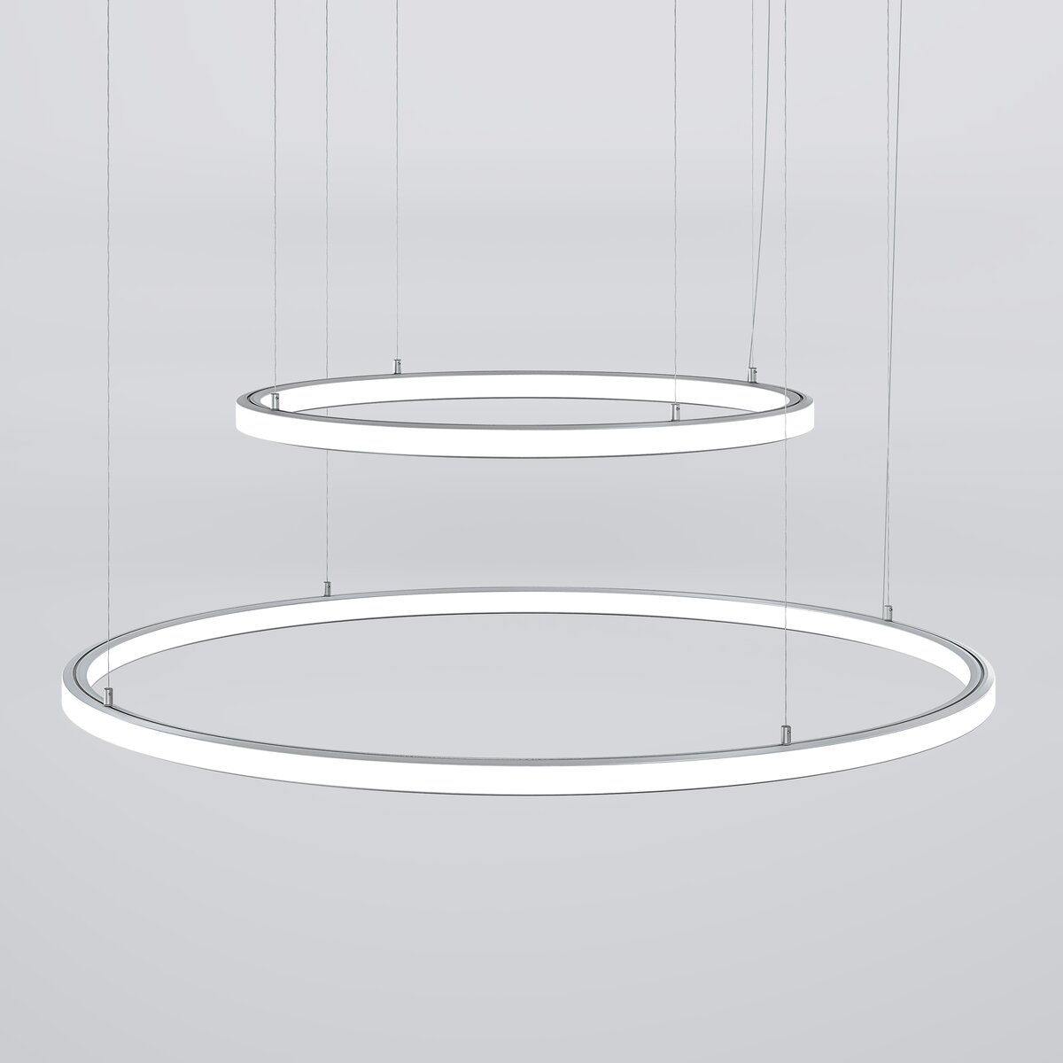Die CIRCA-H-1 LED-Deckenleuchte ist eine elegante Ringlampe in schlanker und moderner Form. Ihr Design besteht aus zwei unterschiedlich großen Ringen (Ø 54 cm + Ø 88 cm), die in einer harmonischen Kombination angeordnet sind. Durch diese doppelte Ringform wirkt die Leuchte wie eine minimalistische Lichtskulptur, die Funktionalität und Ästhetik perfekt miteinander verbindet.