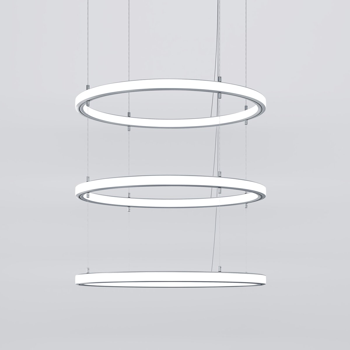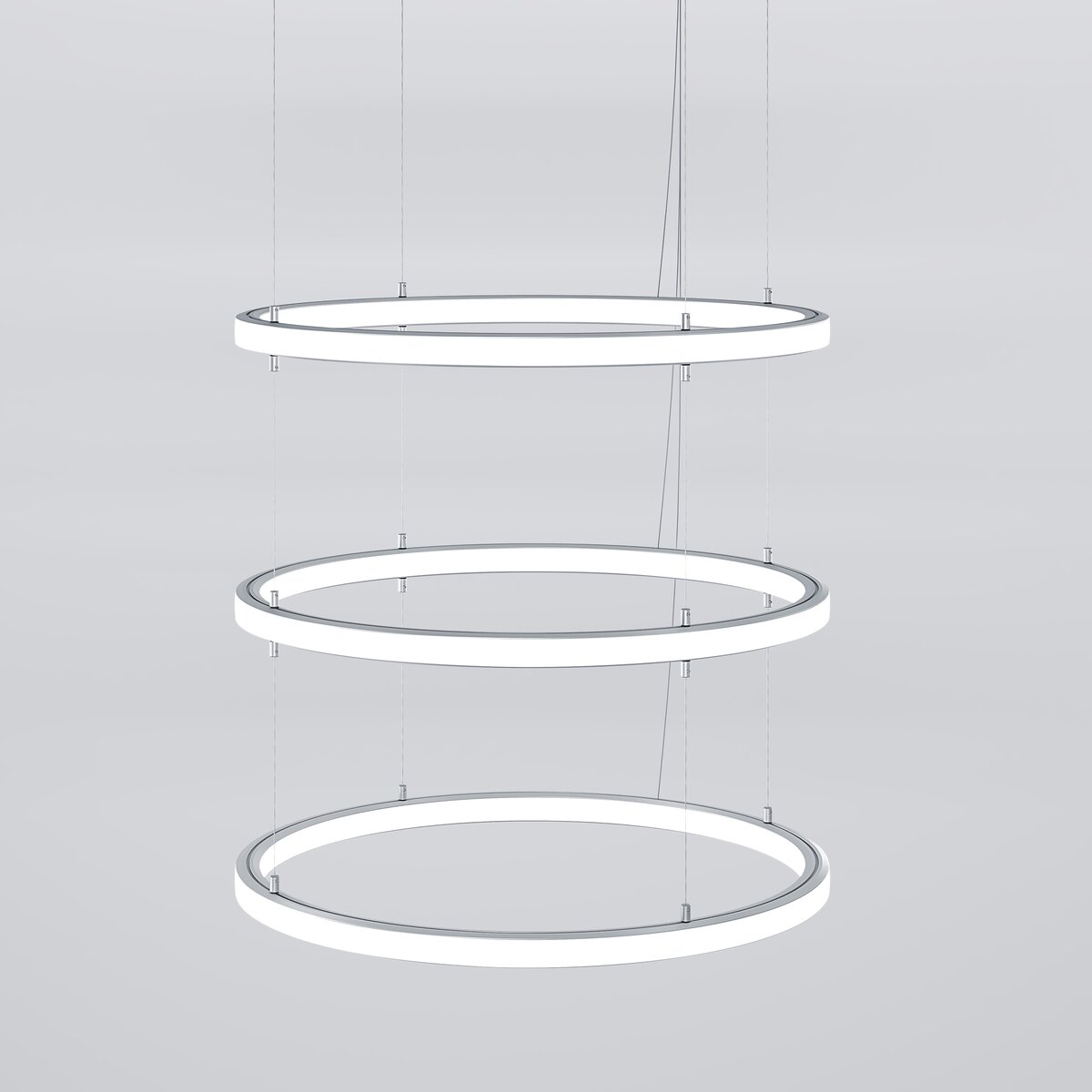 Die CIRCA-H-2 LED-Deckenleuchte ist eine elegante Kaskadenlampe in schlanker und moderner LED-Ringform. Ihr dreifacher Ringaufbau mit einem Durchmesser von Ø 54 cm je Ring schafft eine eindrucksvolle Lichtwirkung und sorgt für ein harmonisches Zusammenspiel von Funktionalität und Design. Durch die kaskadenförmige Anordnung der Ringe wirkt die Leuchte wie eine schwebende Lichtskulptur, die jedem Raum eine raffinierte und exklusive Note verleiht.