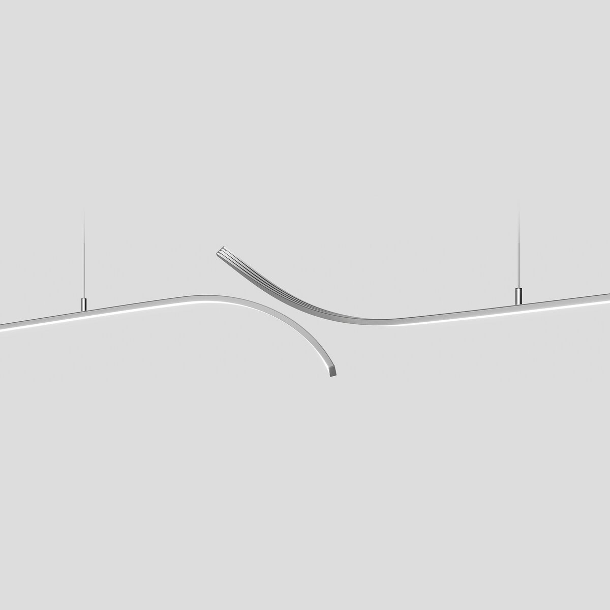 Die DIMIDIA-H-1 LED-Deckenleuchte ist eine moderne, lineare Seilleuchte mit einer eleganten, gebogenen Form. Ihre zwei geschwungenen Lichtkörper erinnern an sanfte Wellen oder einen dynamischen Schwung, wodurch sie nicht nur für optimale Ausleuchtung sorgt, sondern auch als ästhetisches Designelement wirkt. Mit einer Länge von insgesamt 500 cm und einer Leistung von 116 W bietet die Leuchte kraftvolles, gleichmäßiges Licht.