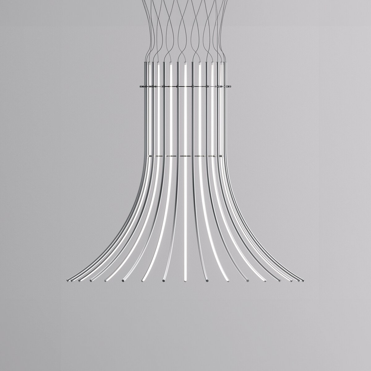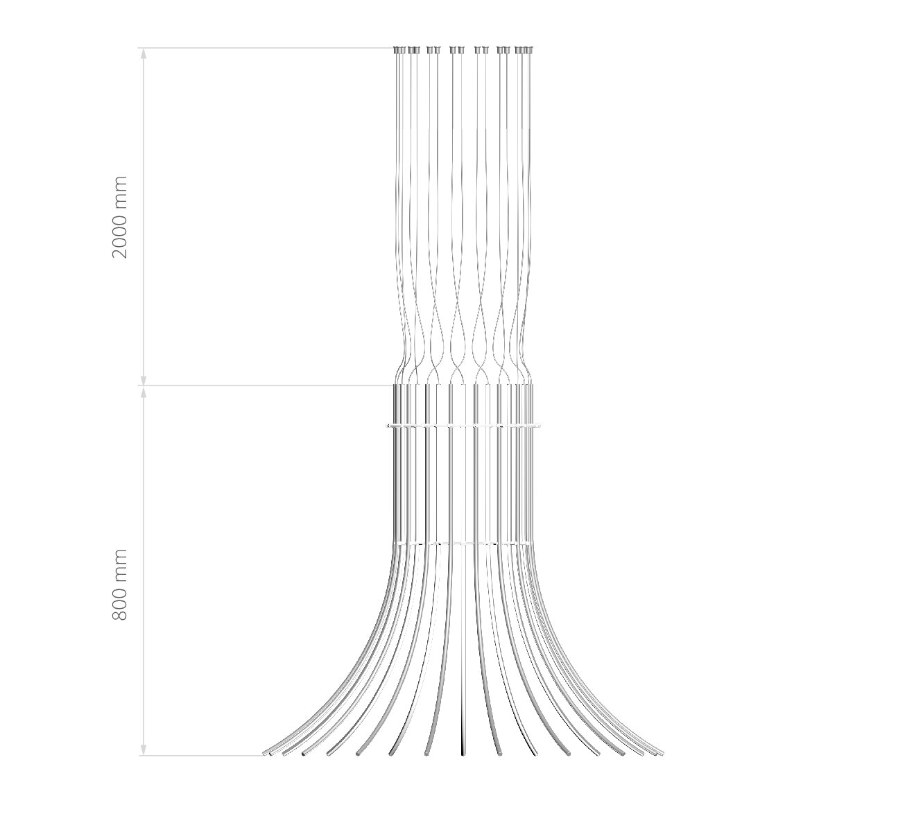 Die TUBE-1 LED Designleuchte ist ein moderner, auffälliger Kronleuchter, dessen Form an einen elegant geöffneten Blütenkelch erinnert. Mit einem imposanten Durchmesser von 90 cm und einer Höhe von 200 cm ist sie ein markantes Designelement, das jedem Raum eine luxuriöse und futuristische Note verleiht. Die sanft geschwungenen LED-Elemente schaffen eine harmonische Lichtwirkung und erzeugen eine warme, einladende Atmosphäre.