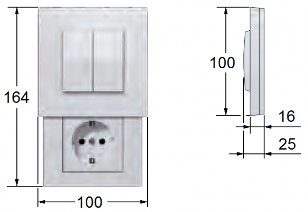 Wandschalter, batterielos für CASAMBI-Netzwerke 4 Kanäle, mit dahinterliegender konventioneller Steckdose, Typ F