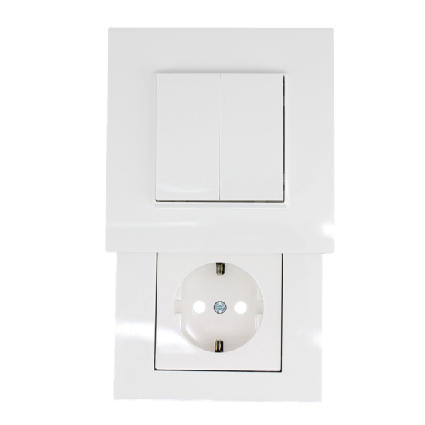 - Bei Druck auf den Rahmen gleitet der Wandschalter nach oben und gibt die Steckdose frei